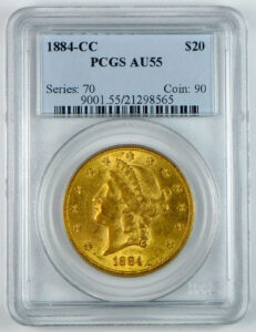 1884-CC $20 Gold Liberty Head Double Eagle – PCGS AU 55