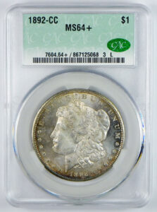 1892-CC Morgan Silver Dollar – CAC MS 64+ – Dark Reverse Toning