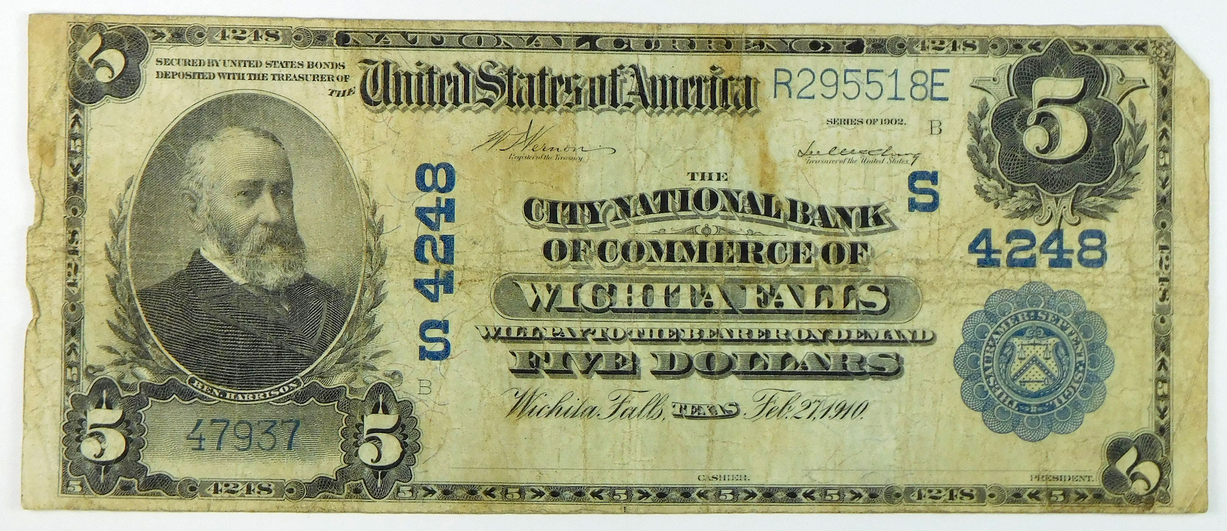 1902 PB $5 City National Bank of Commerce of Wichita Falls, Texas – CH# 4248