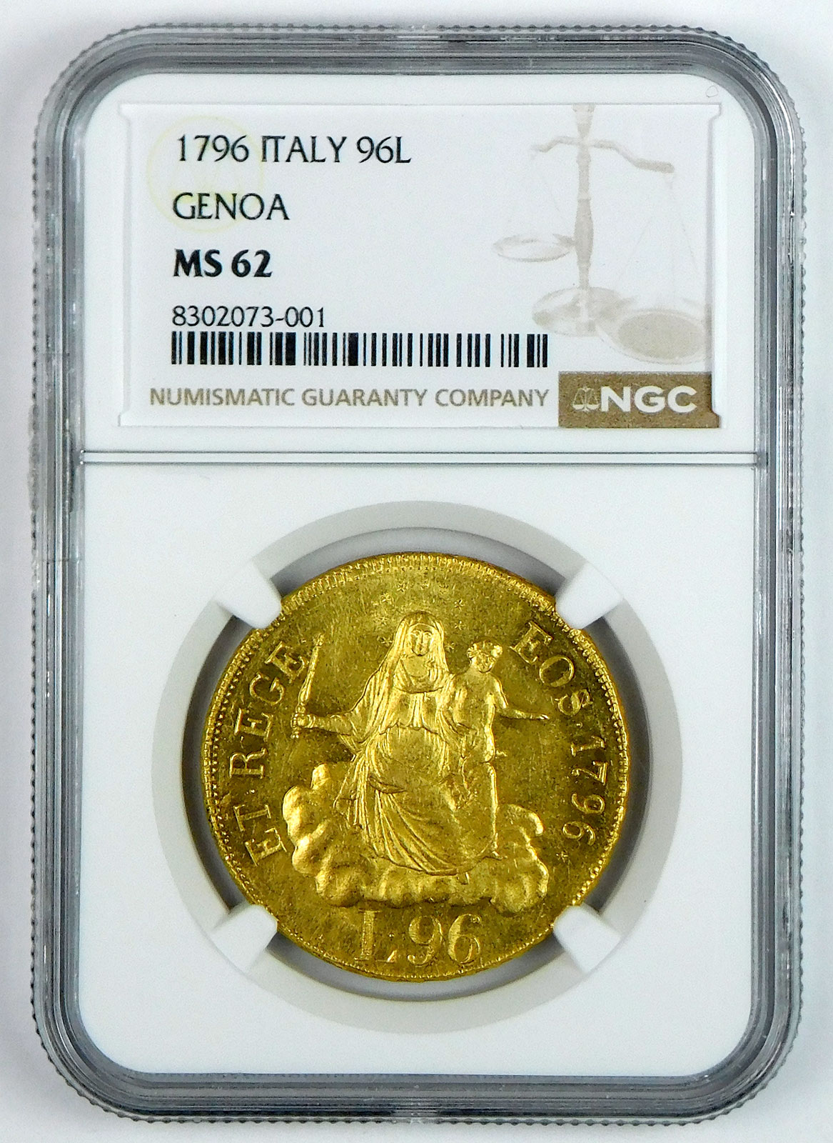 1796 Italy - Genoa Gold 96 Lire - NGC MS 62 quantity