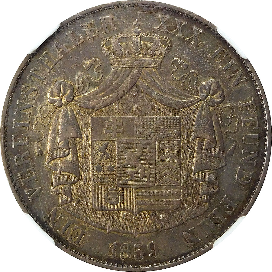 1859 Germany: Hesse-Homburg Silver Thaler - NGC AU 50 quantity