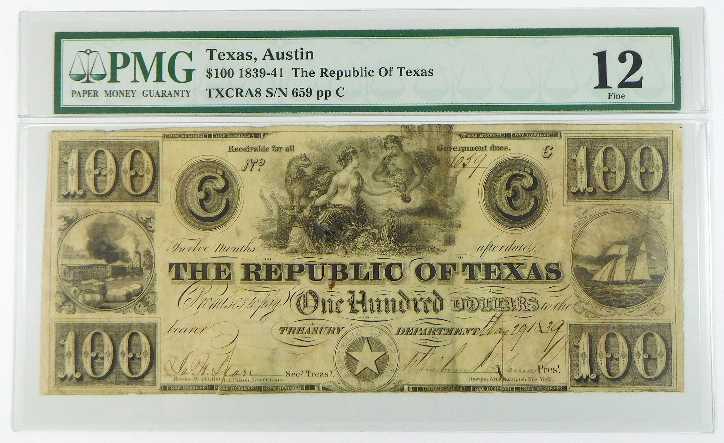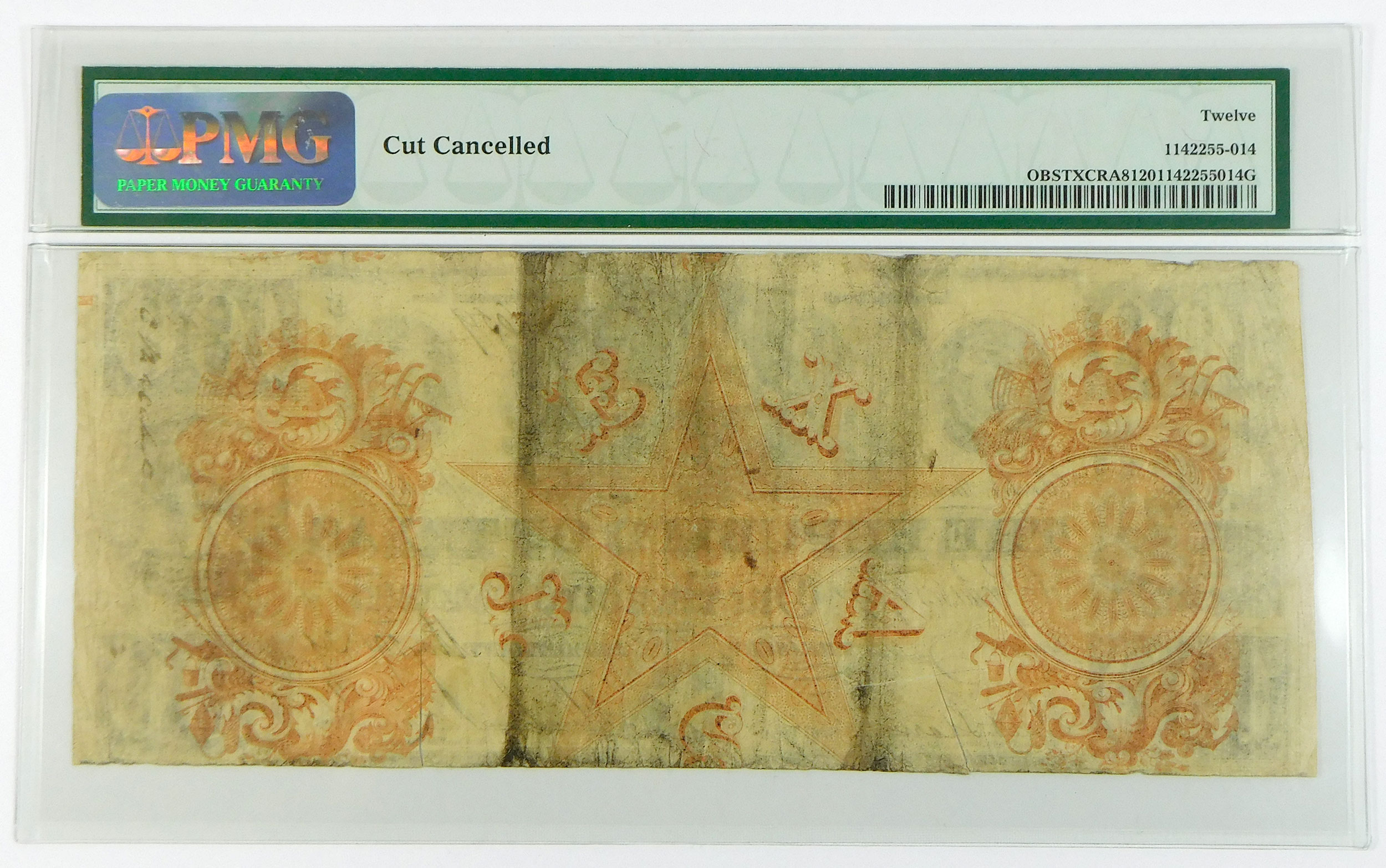 Attractive note that has been cut cancelled along the bottom edge, some soil. S/N 659.