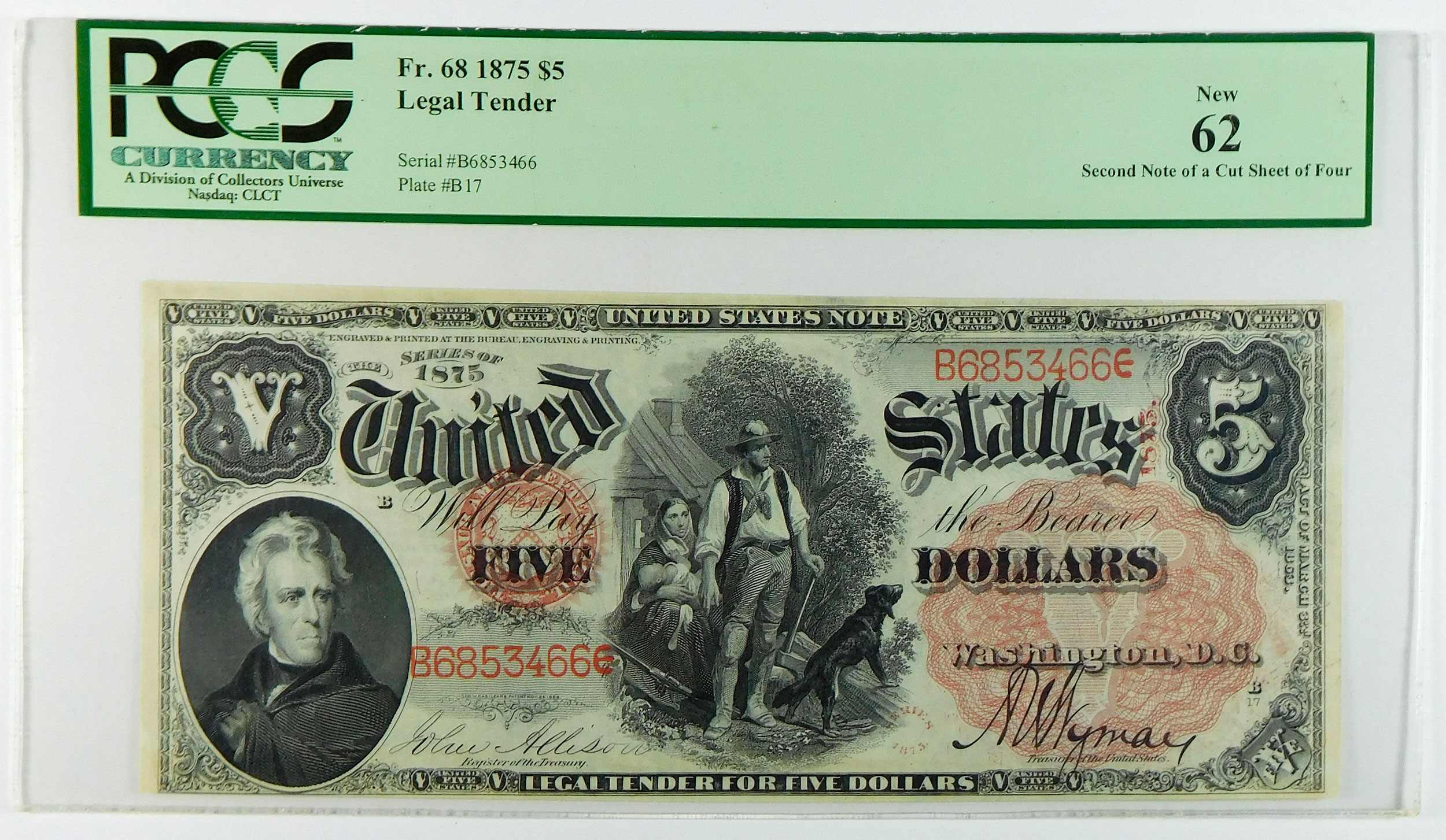 Attractive, colorful note. Second note of a cut sheet of four. S/N B6853466.