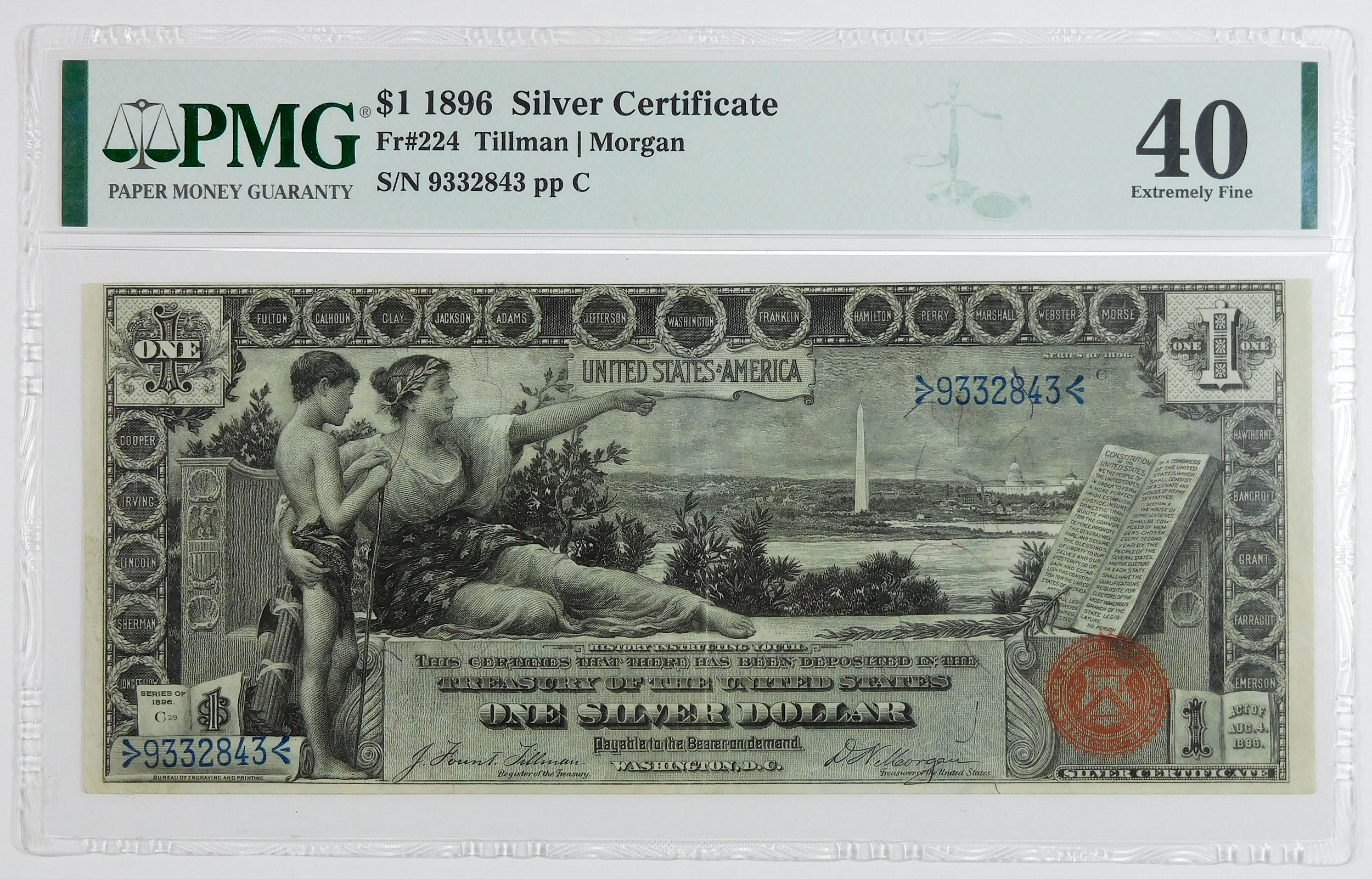 Beautiful note with a minor repair on the center top edge, trimmed. S/N 9332843