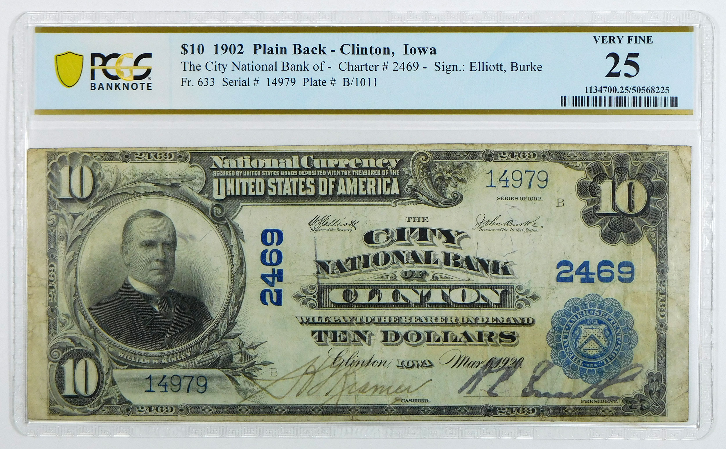 1902 PB $10 City National Bank of Clinton, Iowa - CH#2469 - Fr#633 - PCGS 25 Very Fine quantity