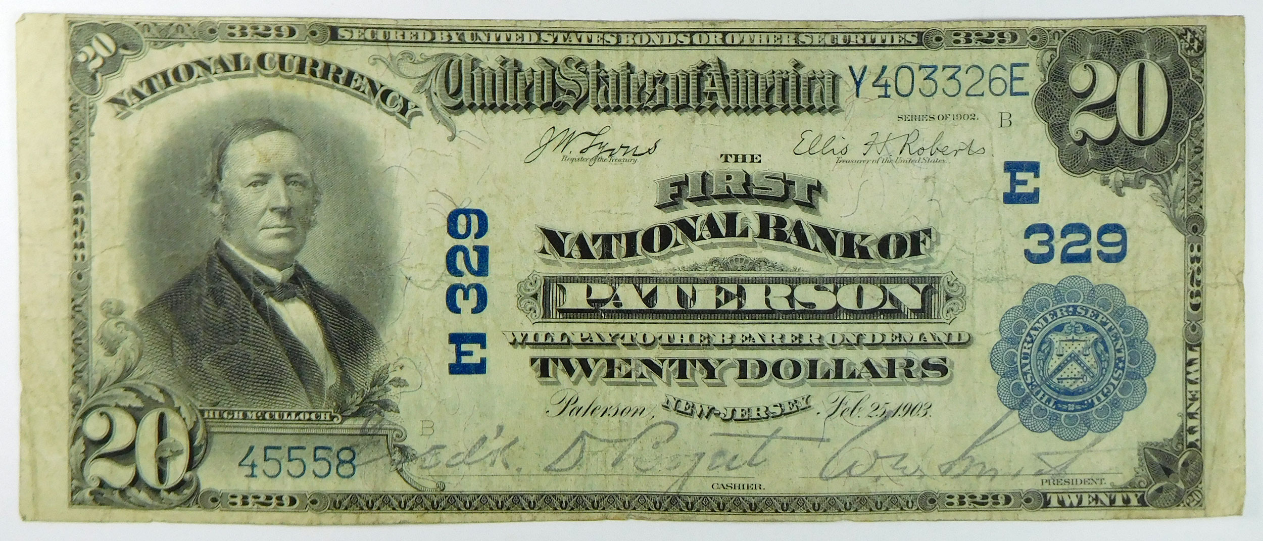 1902 PB $20 First National Bank of Paterson, New Jersey – CH# 329