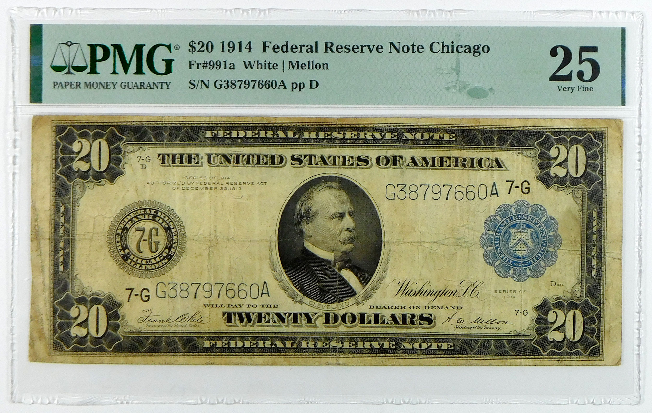 1914 $20 Federal Reserve Note Chicago – Fr#991a – PMG 25 Very Fine