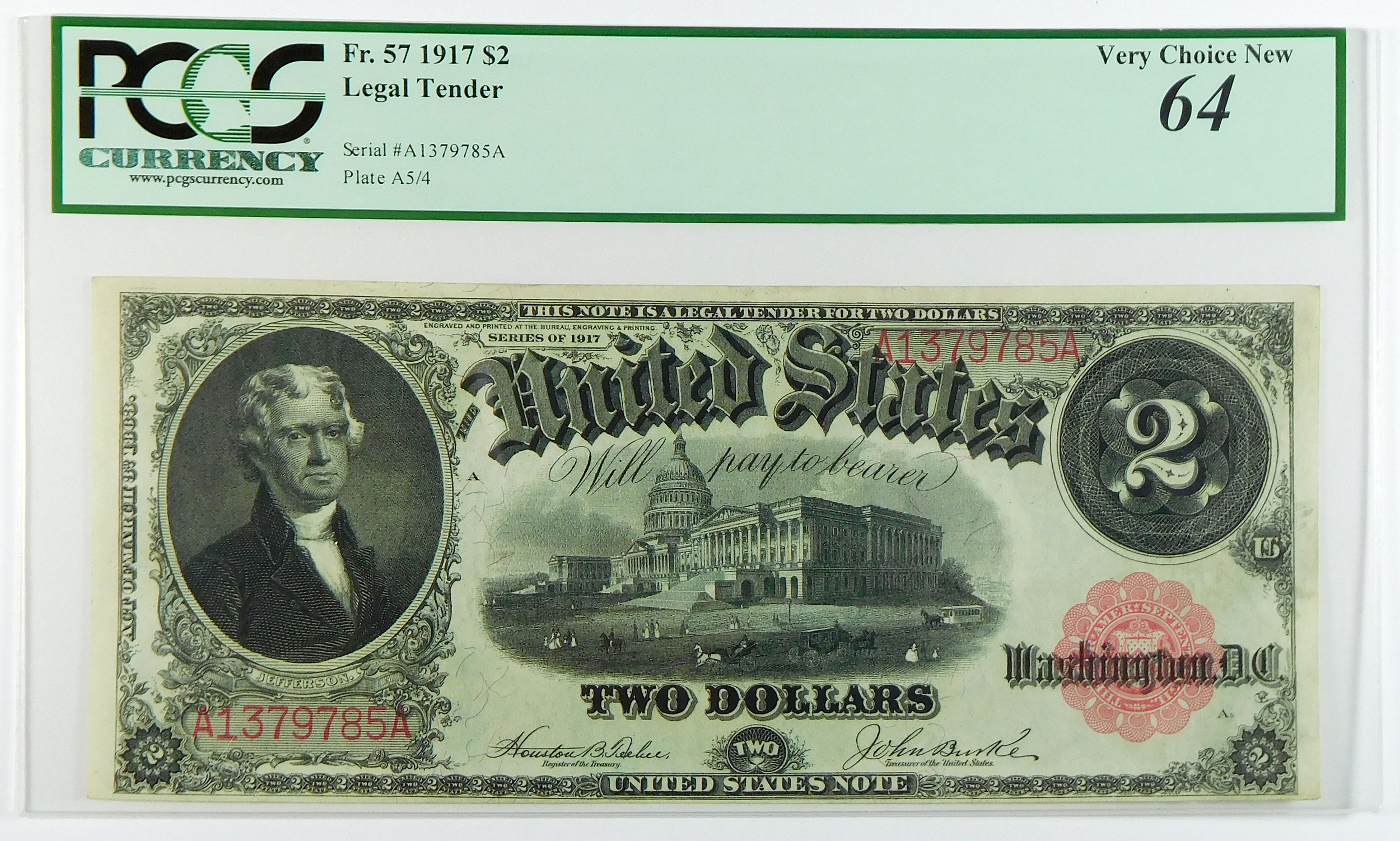 1917 $2 Legal Tender U.S. Note – Fr#57 – PCGS 64 Very Choice New