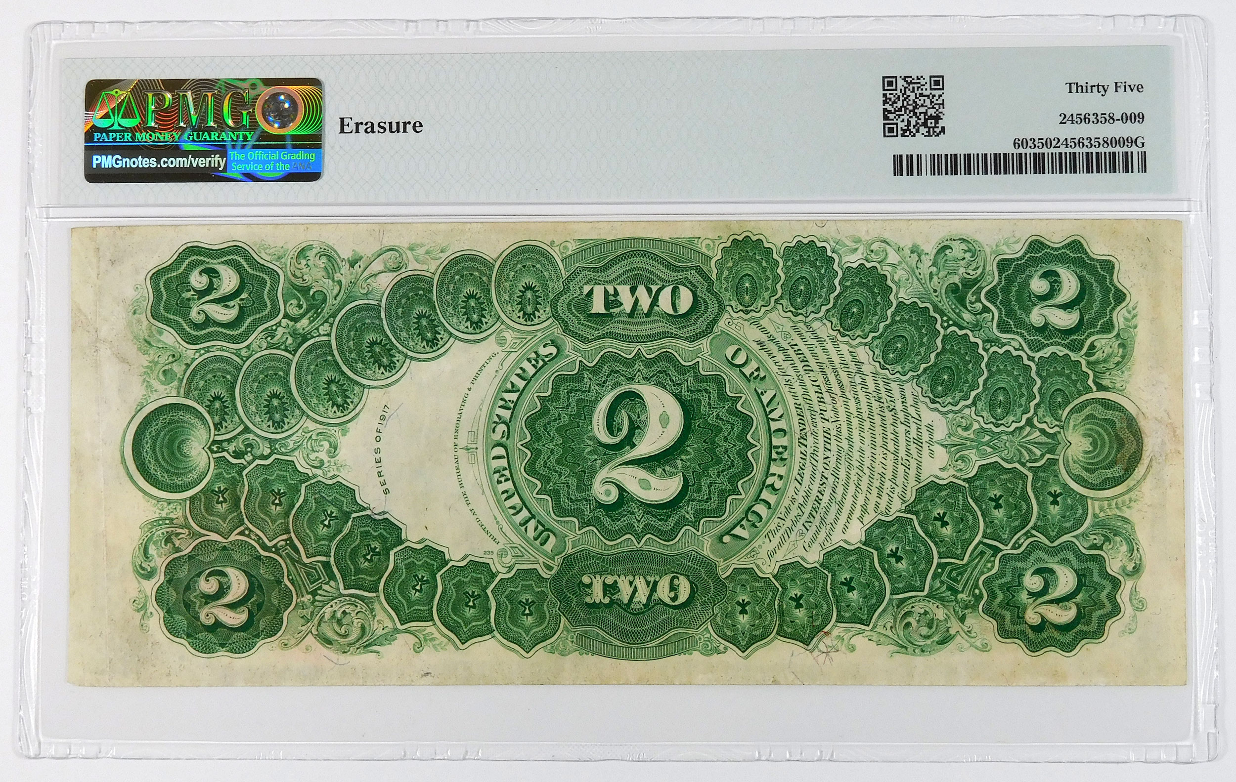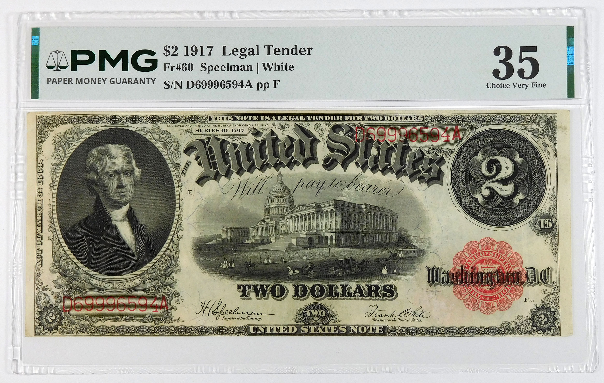 1917 $2 Legal Tender U.S. Note - Fr#60 - PMG 35 Choice Very Fine quantity