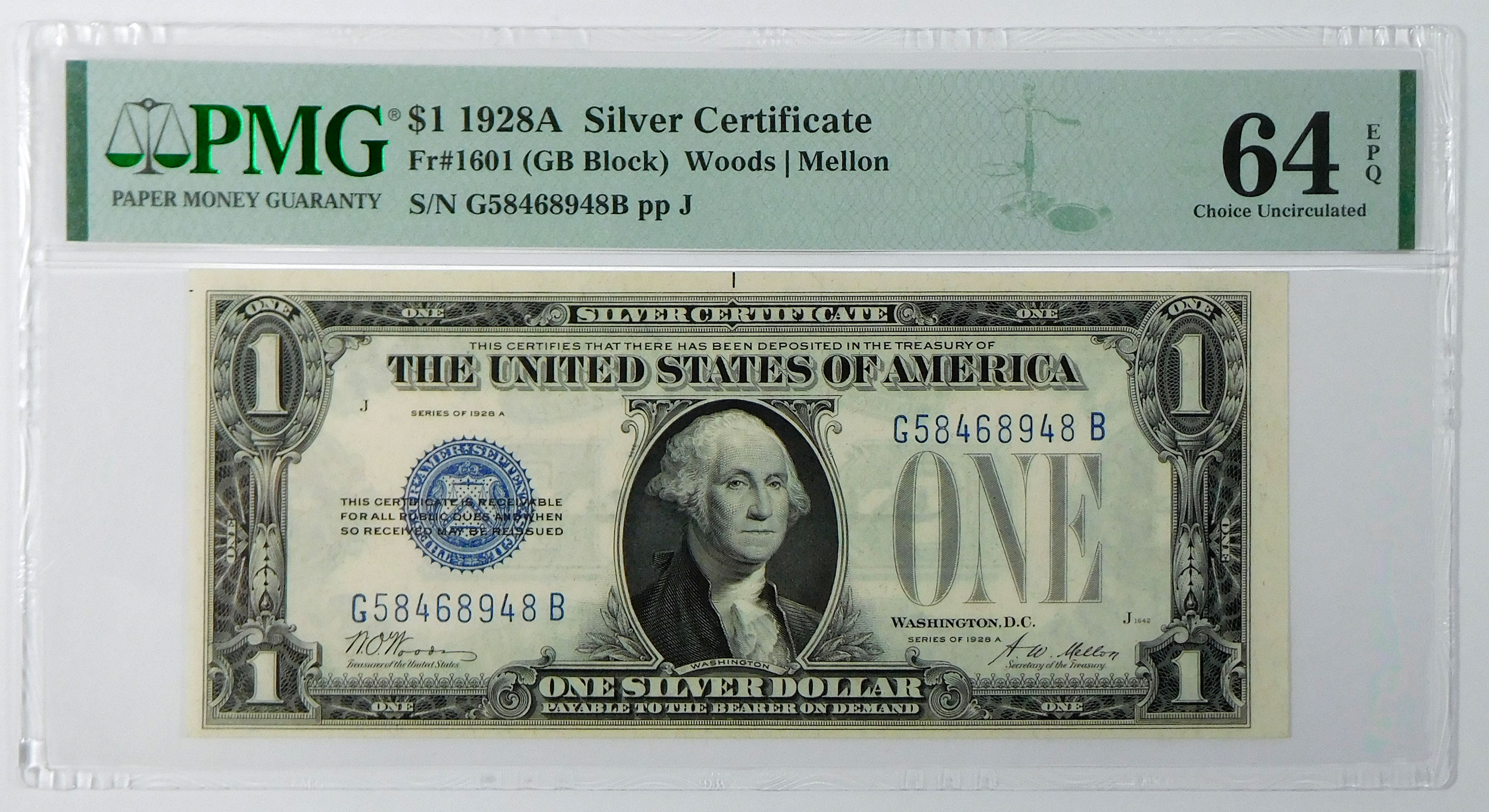 1928A $1 Silver Certificate - Fr#1601 - PMG 64 Choice Uncirculated EPQ #2 quantity