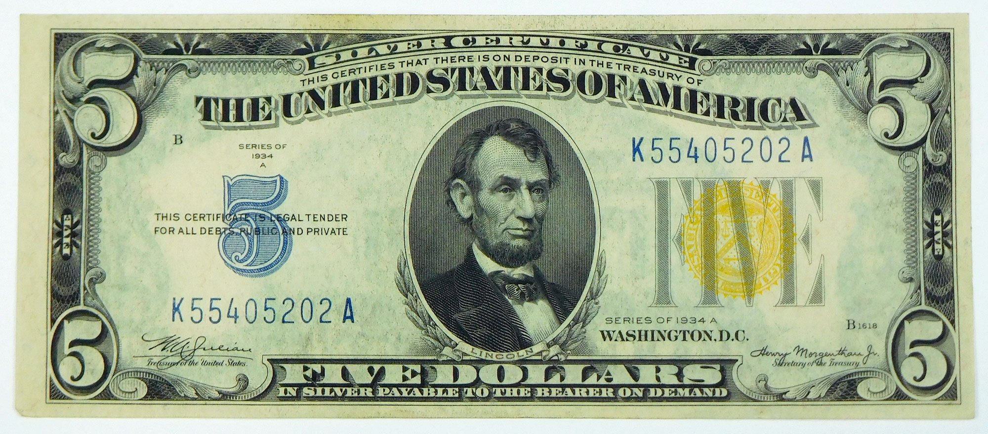 1934A $5 Silver Certificate – WWII North Africa Emergency Issue