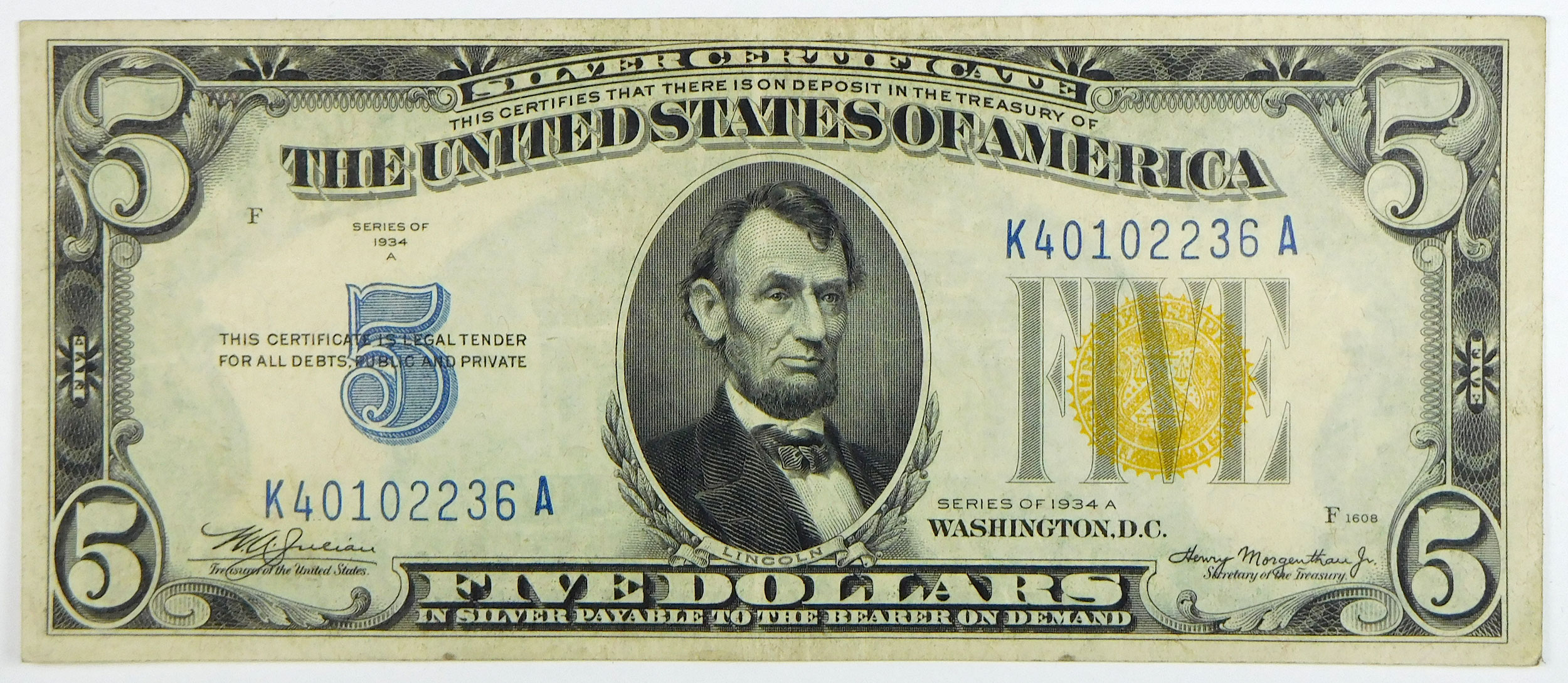 1934A $5 Silver Certificate – WWII North Africa Emergency Issue