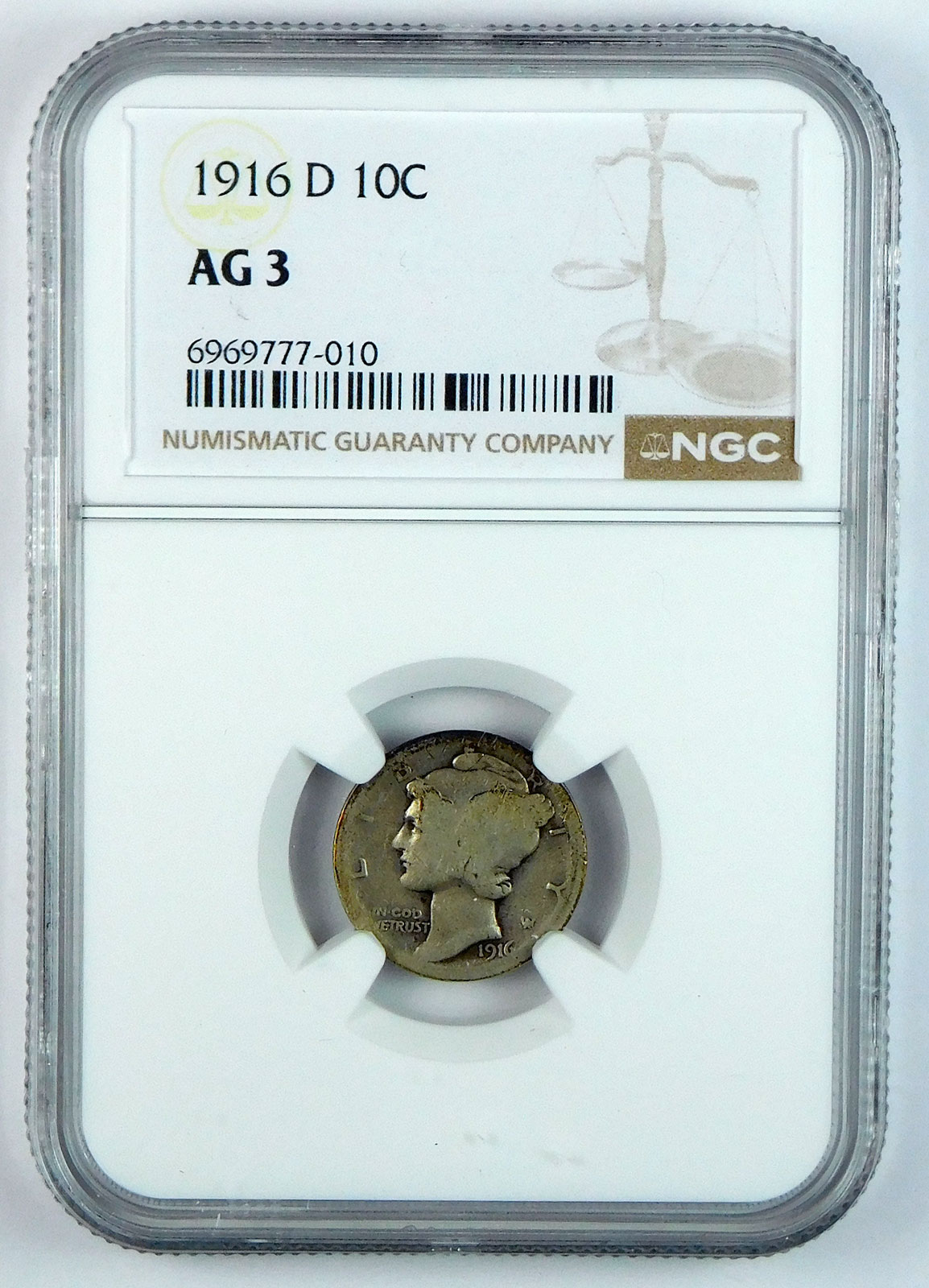 1916-D Mercury Dime – NGC AG 3