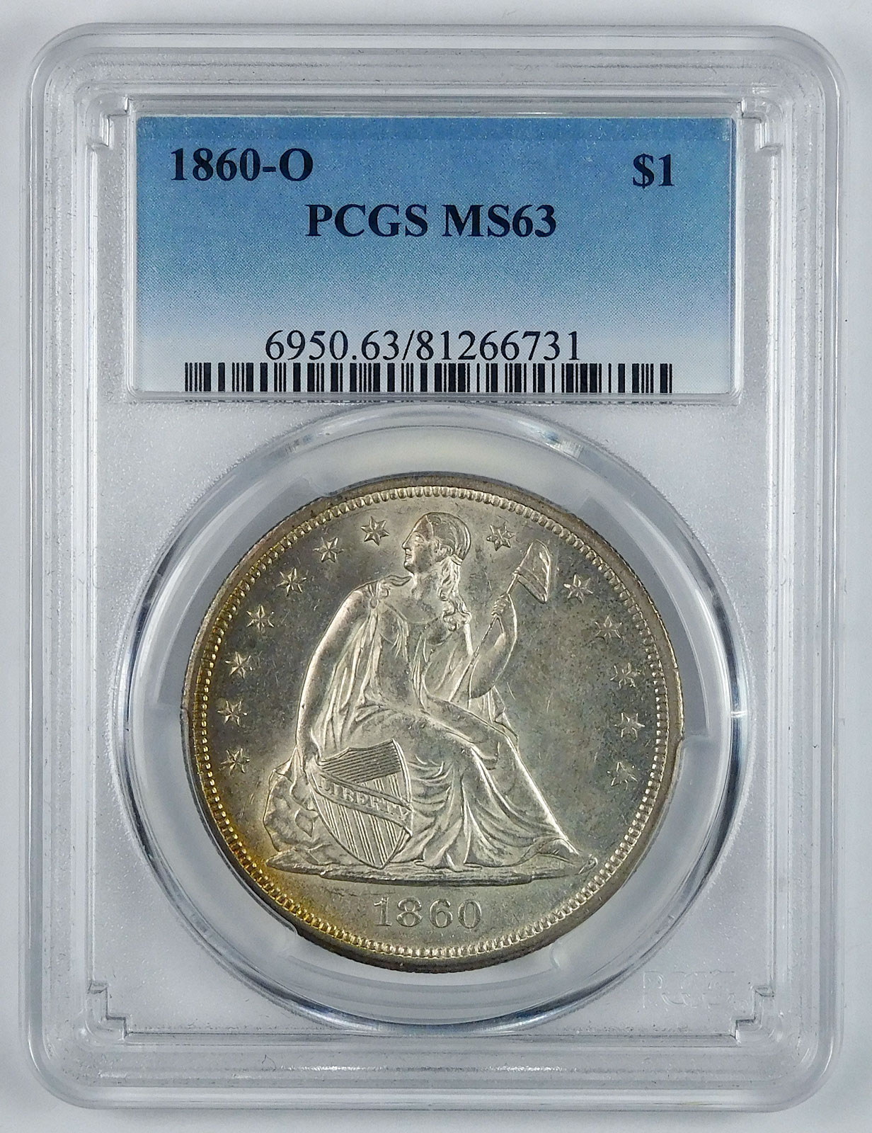 1860-O Seated Liberty Silver Dollar – PCGS MS 63