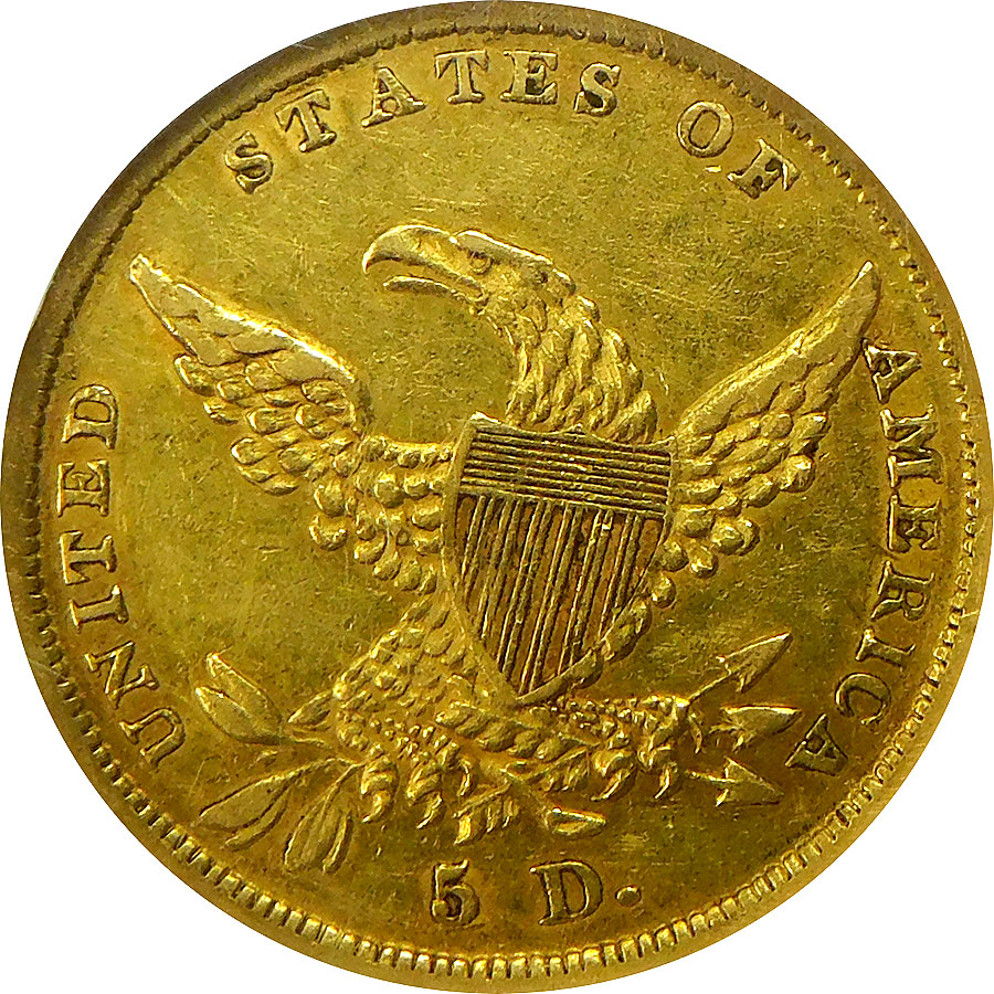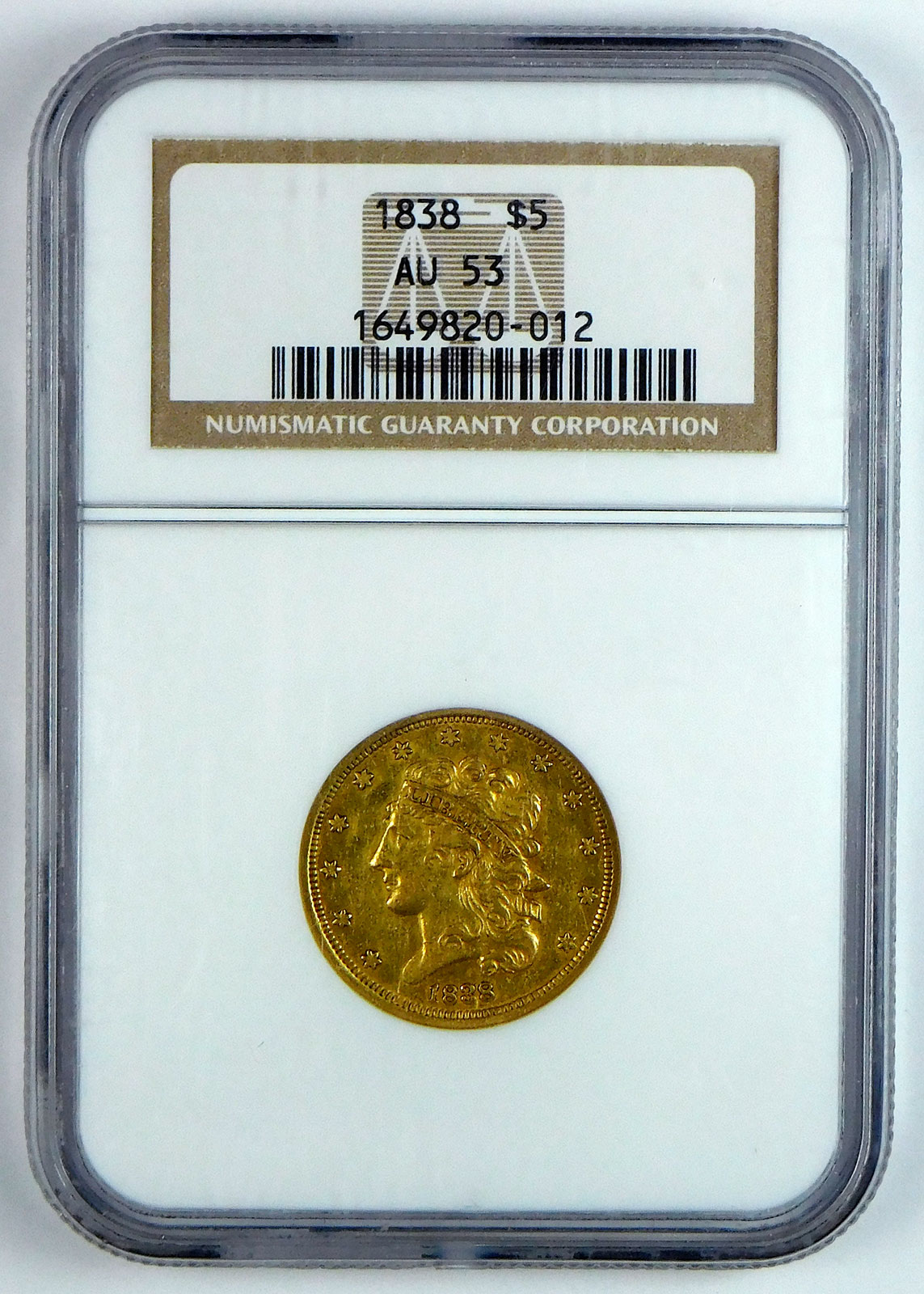 1838 $5 Gold Classic Head Half Eagle – NGC AU 53