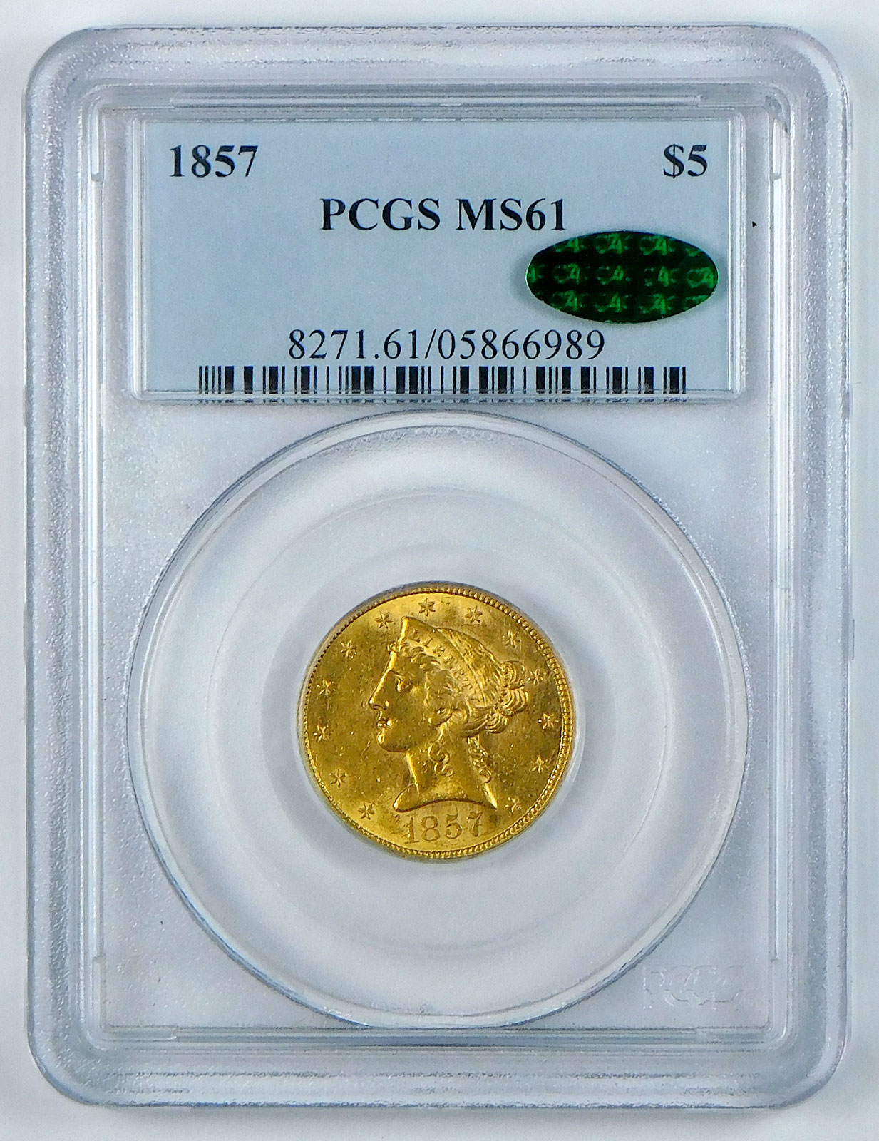 1857 $5 Gold Liberty Head Half Eagle - PCGS MS 61 - CAC quantity