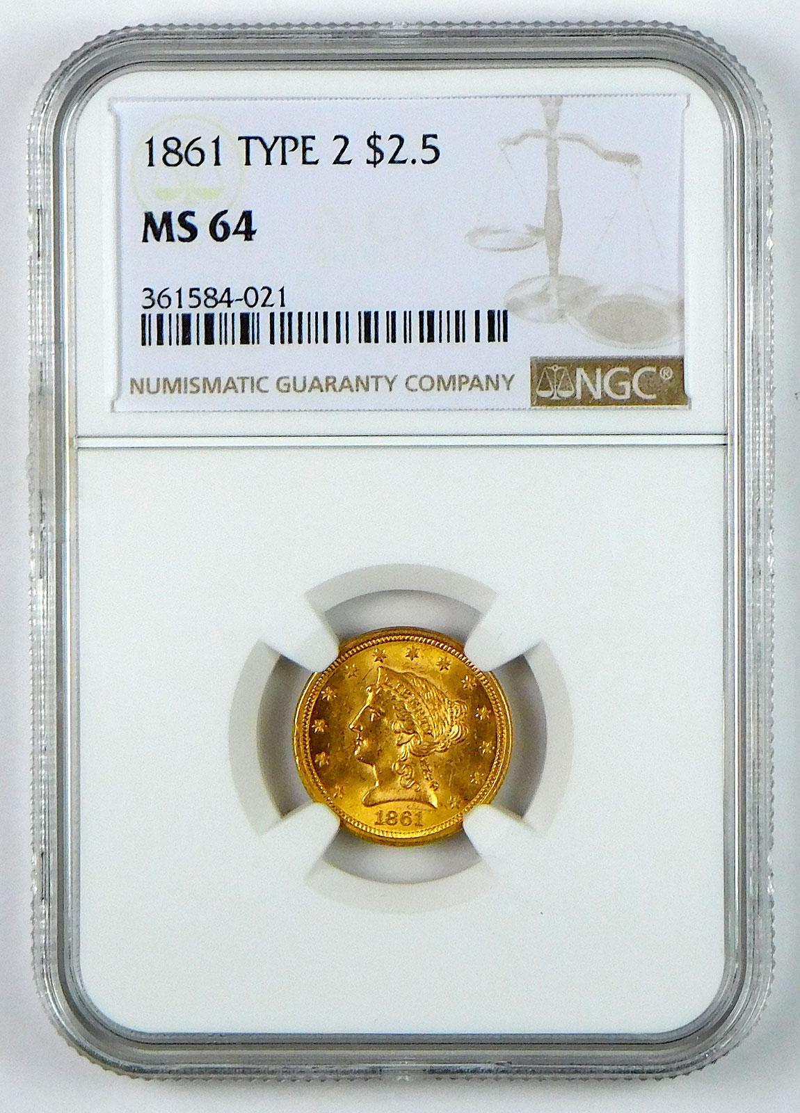 1861 $2.5 Gold Liberty Head Quarter Eagle – NGC MS 64
