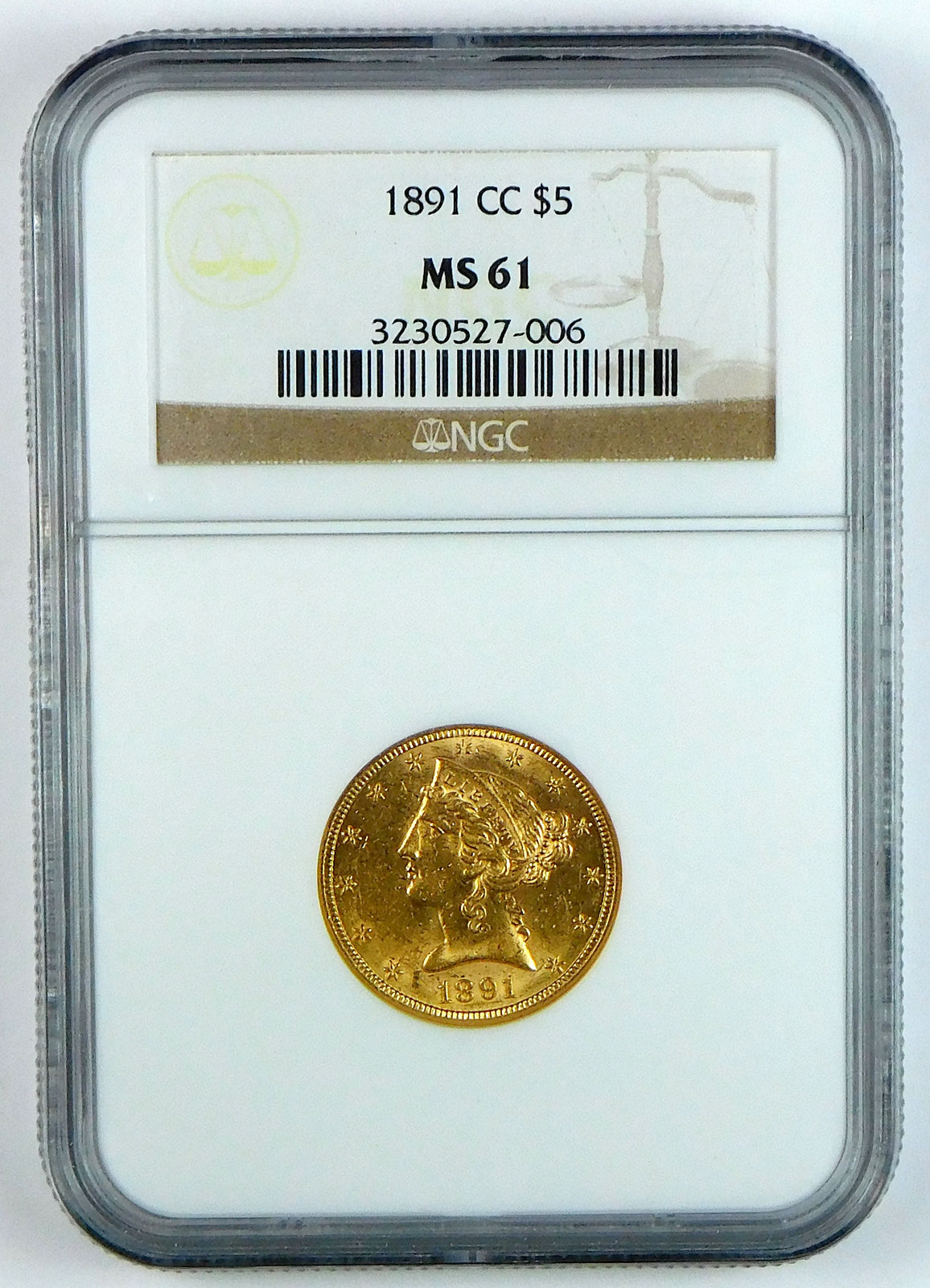 1891-CC $5 Gold Liberty Head Half Eagle - NGC MS 61 quantity