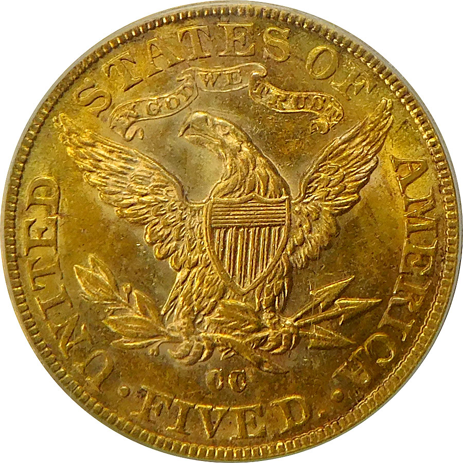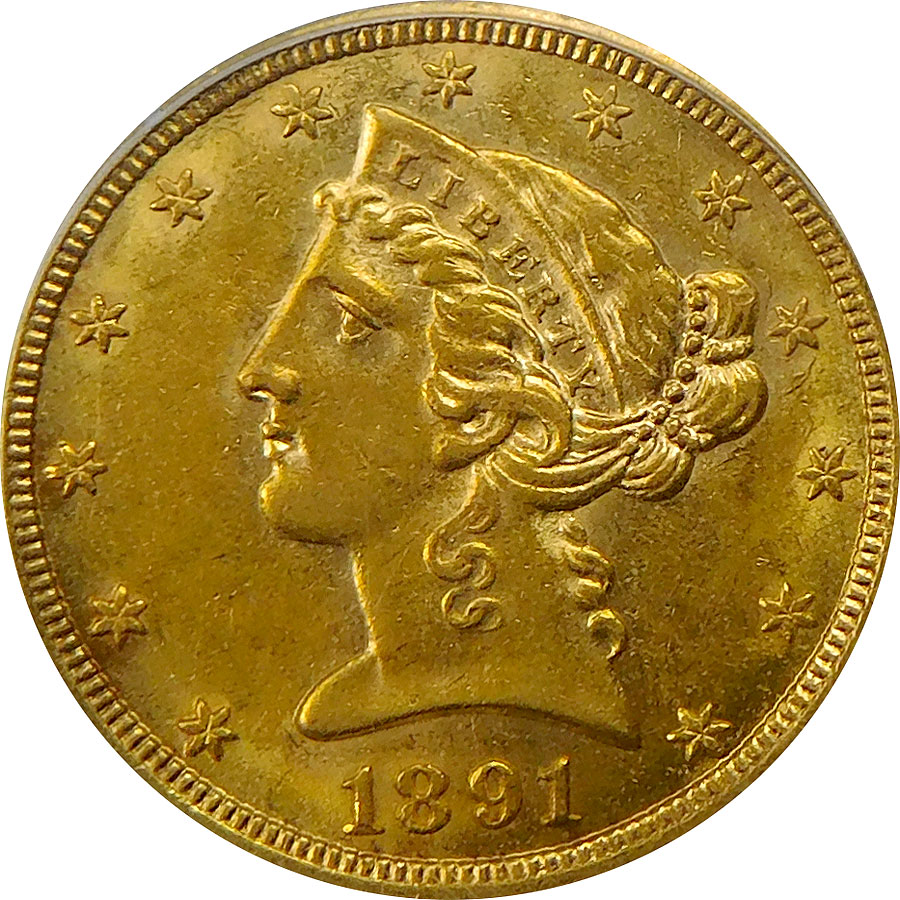 1891-CC $5 Gold Liberty Head Half Eagle – PCGS MS 62