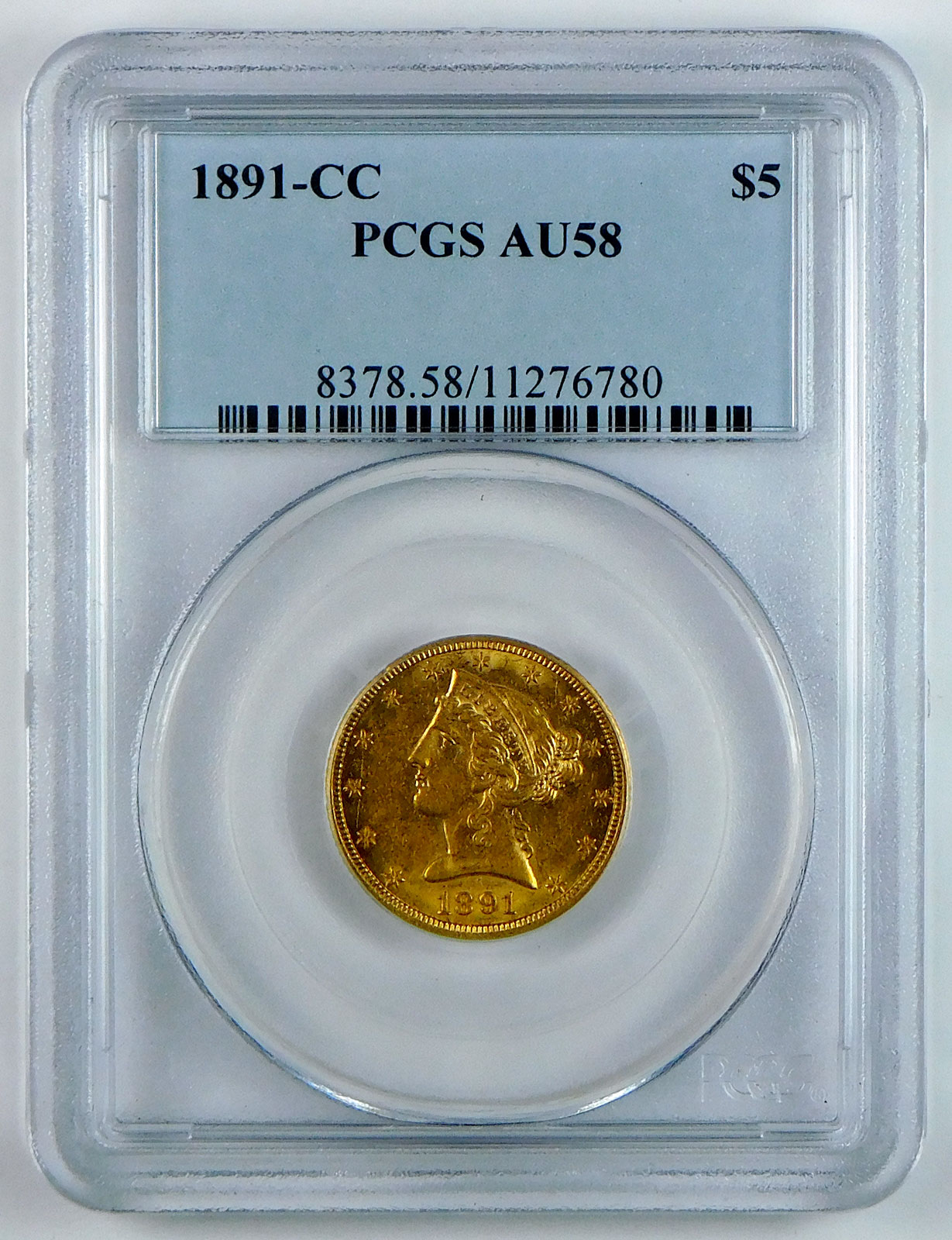 1891-CC $5 Gold Liberty Head Half Eagle – PCGS AU 58