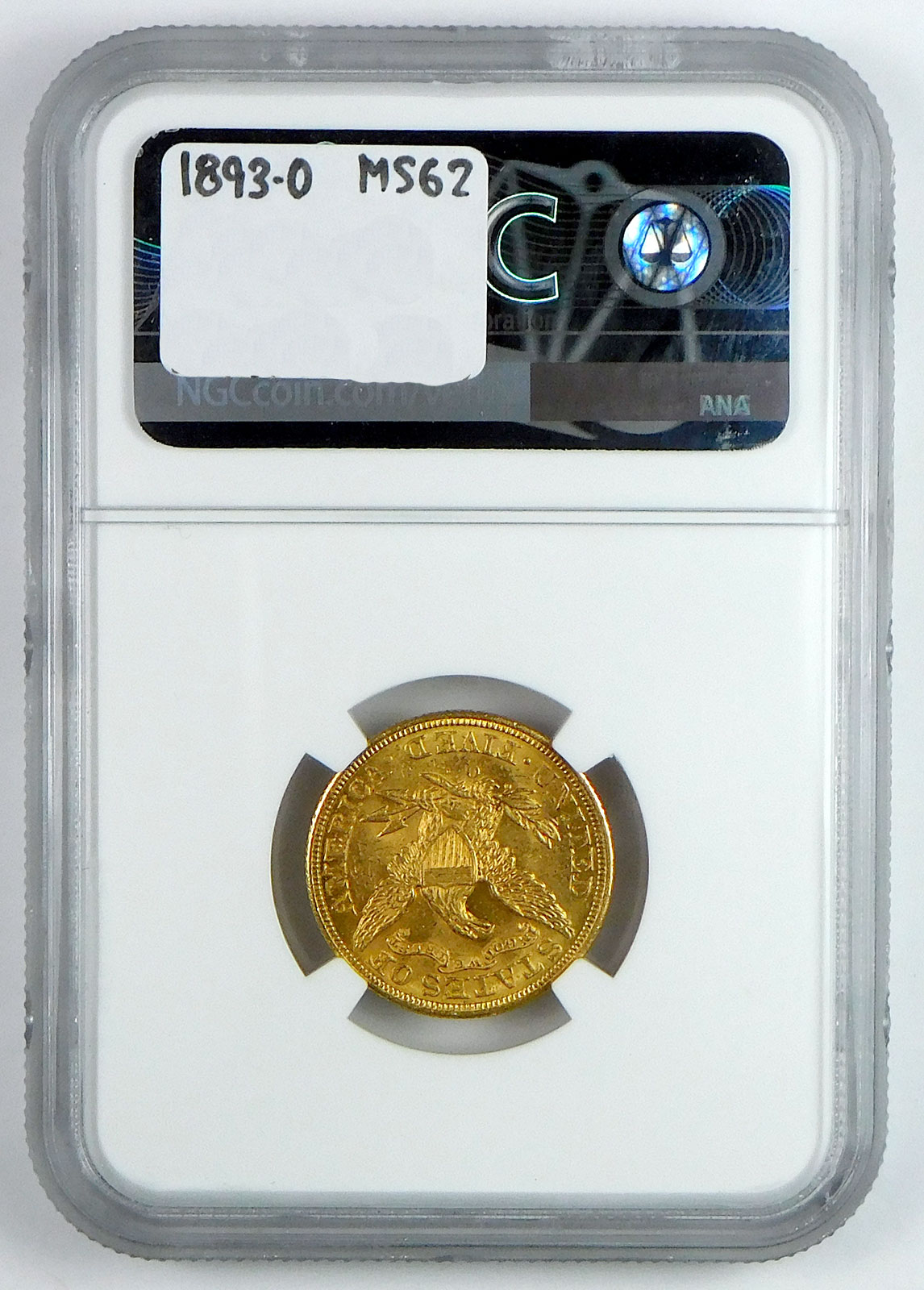 1893-O $5 Gold Liberty Head Half Eagle – NGC MS 62