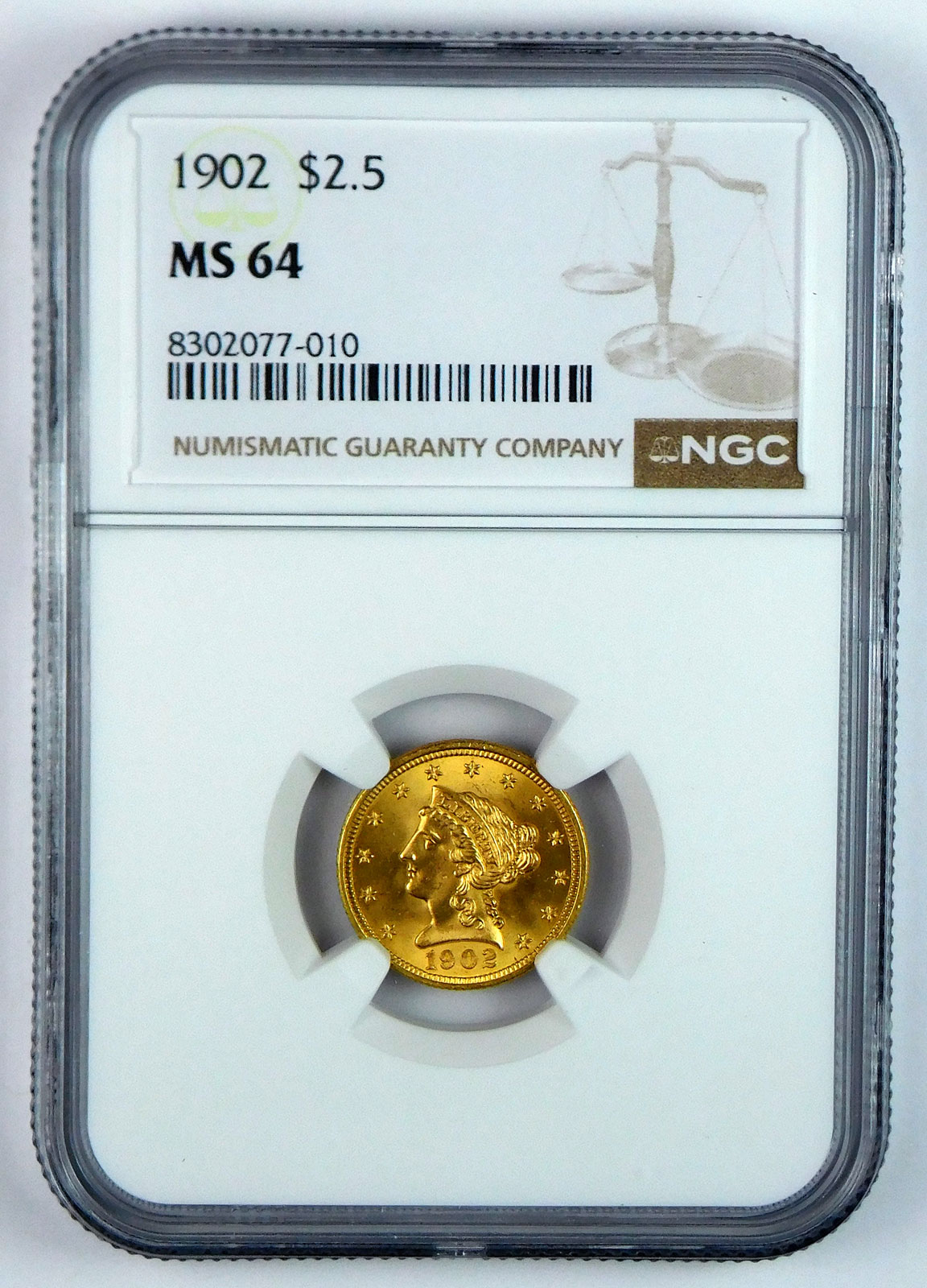 1902 $2.5 Gold Liberty Head Quarter Eagle – NGC MS 64