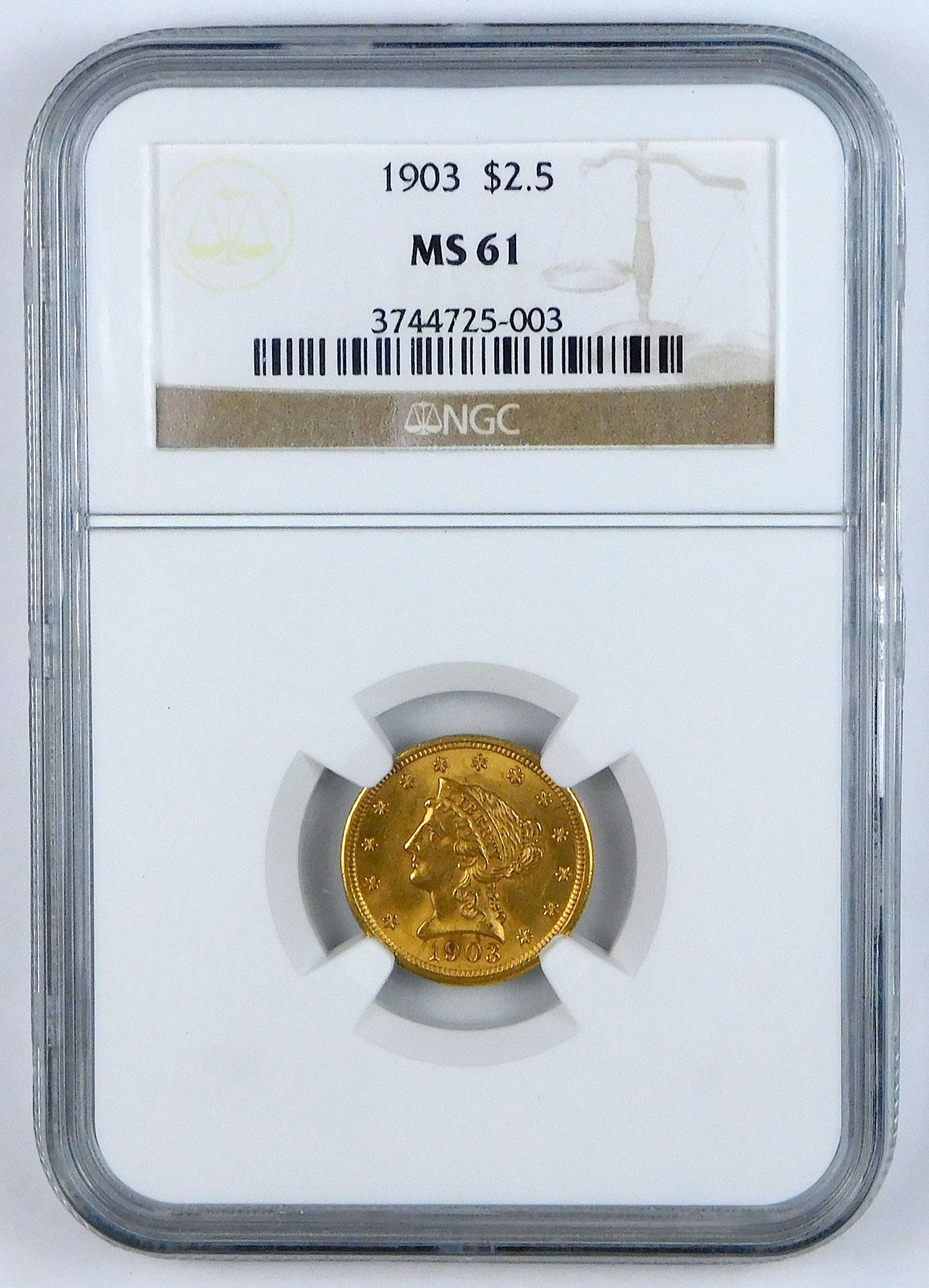 1903 $2.5 Gold Liberty Head Quarter Eagle – NGC MS 61