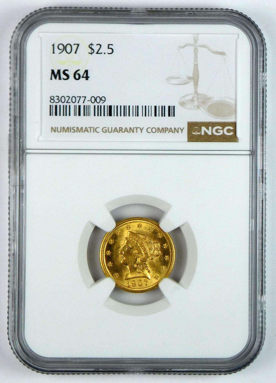 1907 $2.5 Gold Liberty Head Quarter Eagle – NGC MS 64 #1