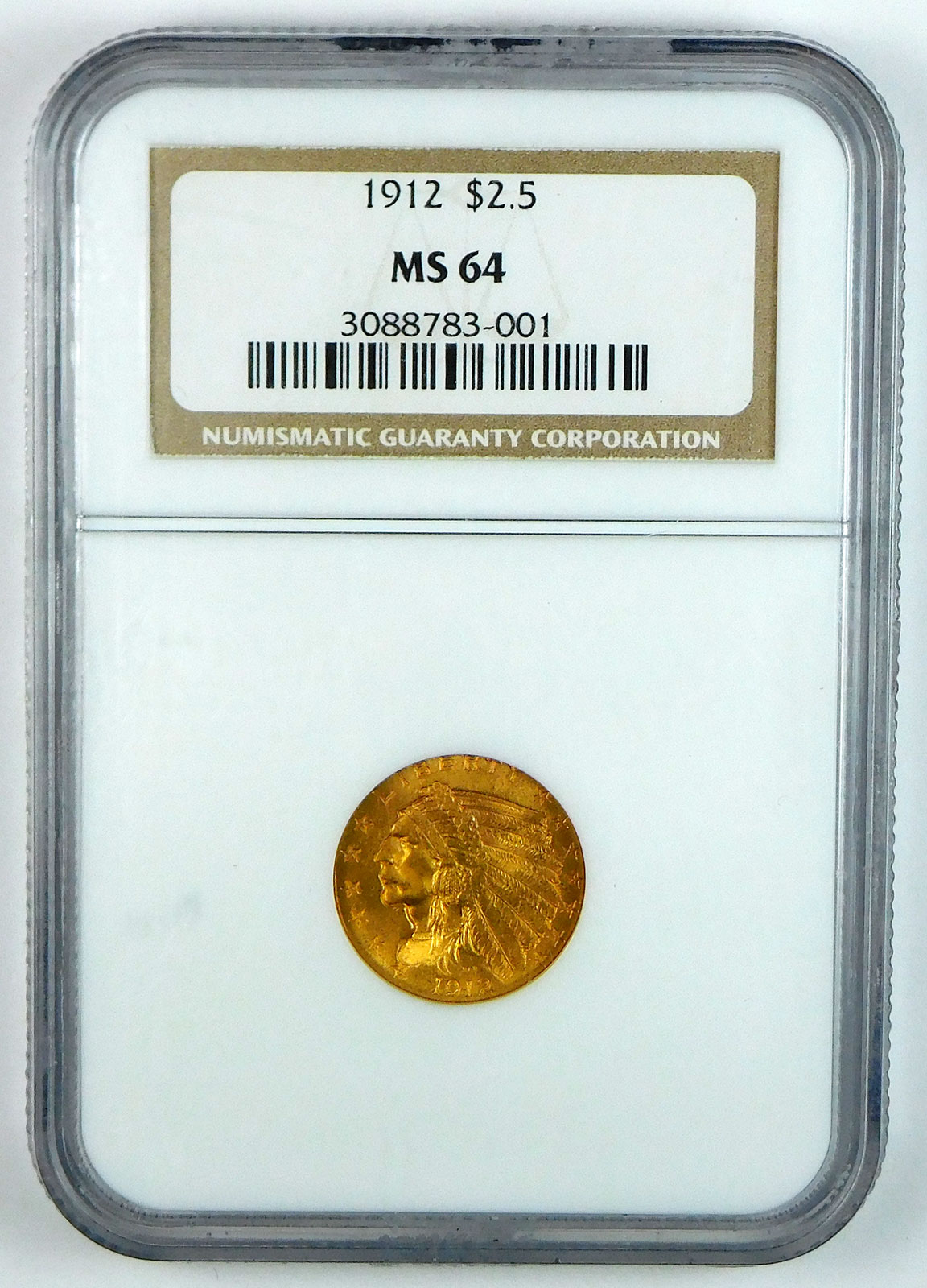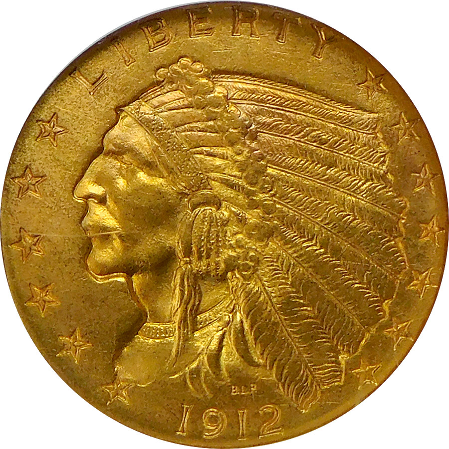 1912 $2.5 Gold Indian Head Quarter Eagle – NGC MS 64