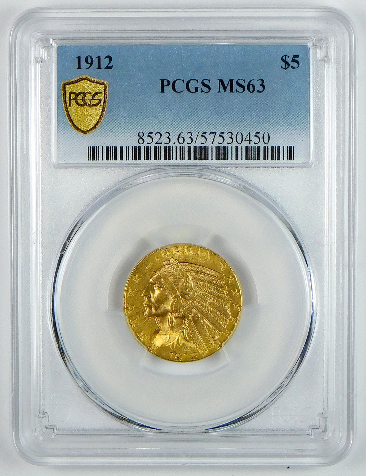 1912 $5 Gold Indian Head Half Eagle – PCGS MS 63