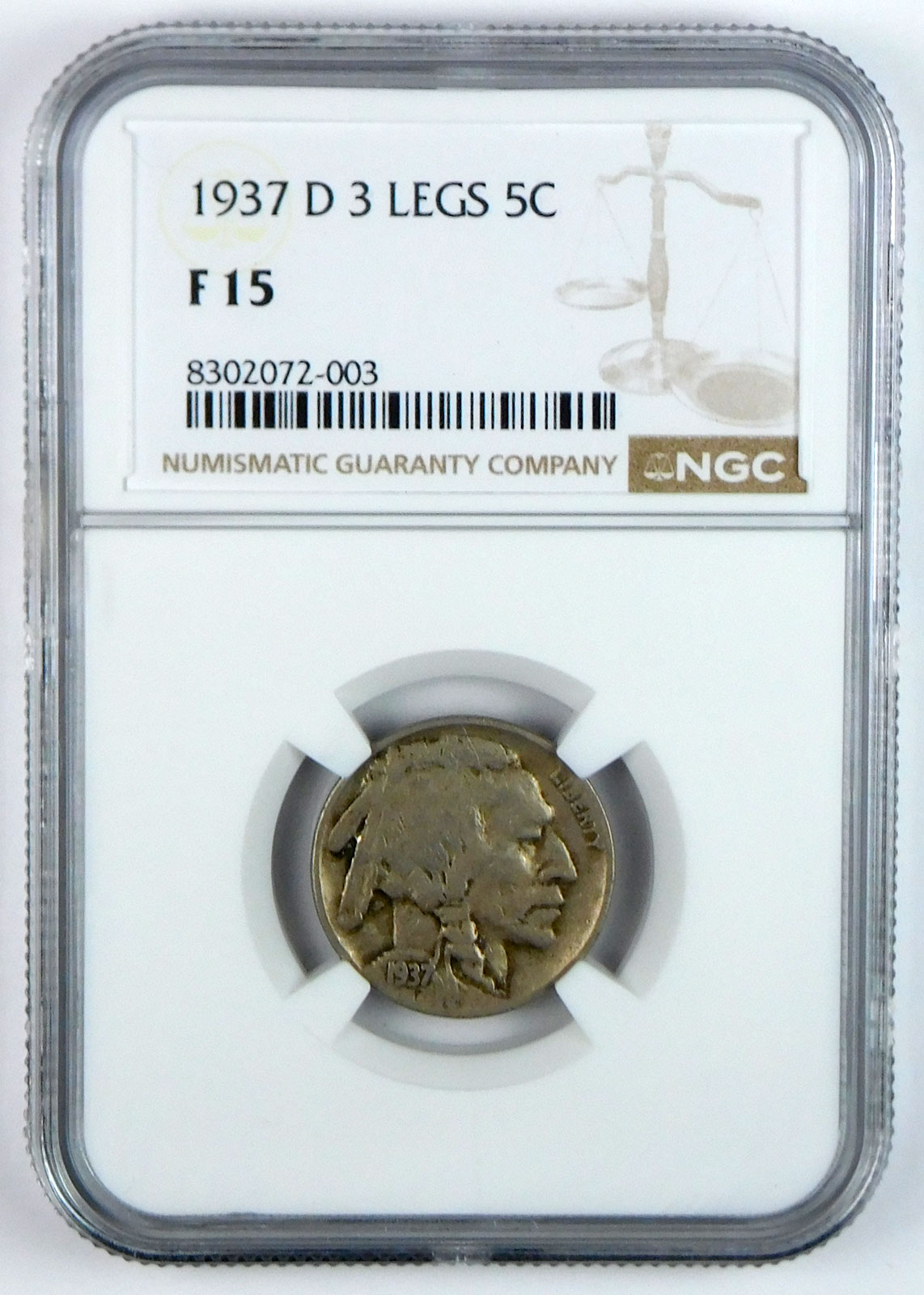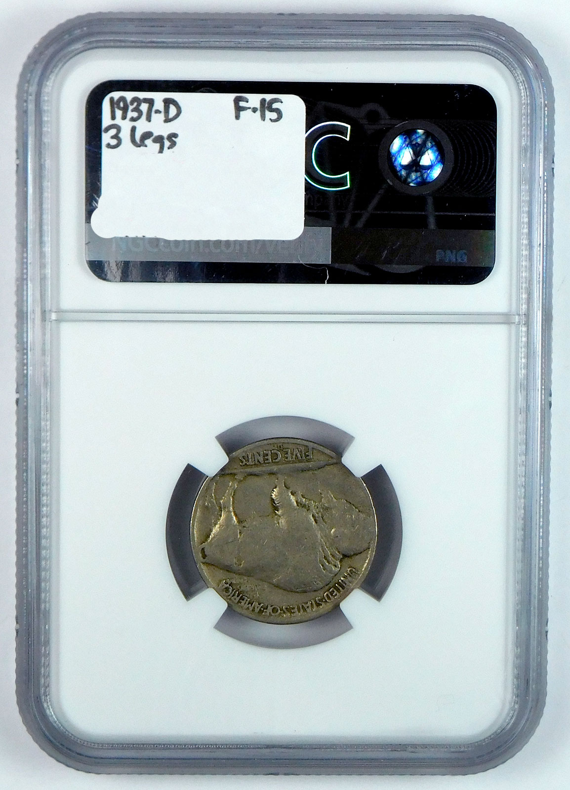 1937-D 3 Legs Buffalo Nickel – NGC F 15