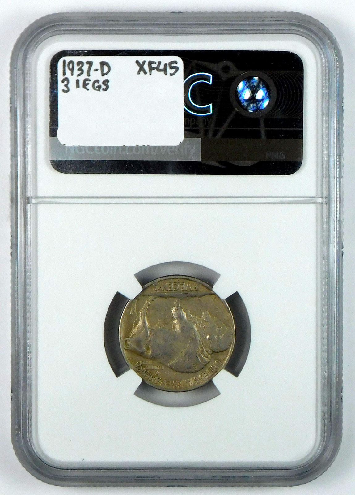 1937-D 3 Legs Buffalo Nickel – NGC XF 45