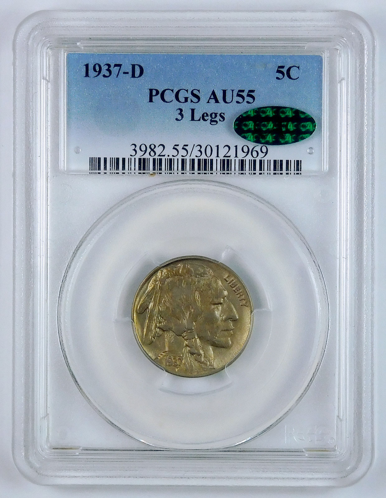 1937-D 3 Legs Buffalo Nickel – PCGS AU 55 – CAC