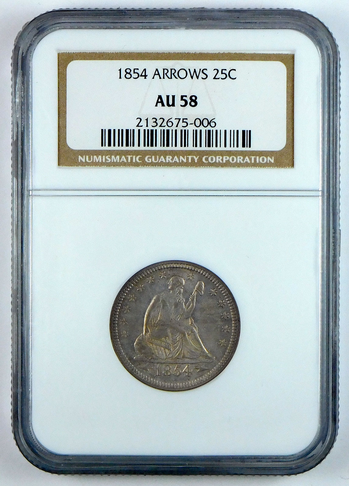 1854 Arrows Seated Liberty Quarter - NGC AU 58 quantity