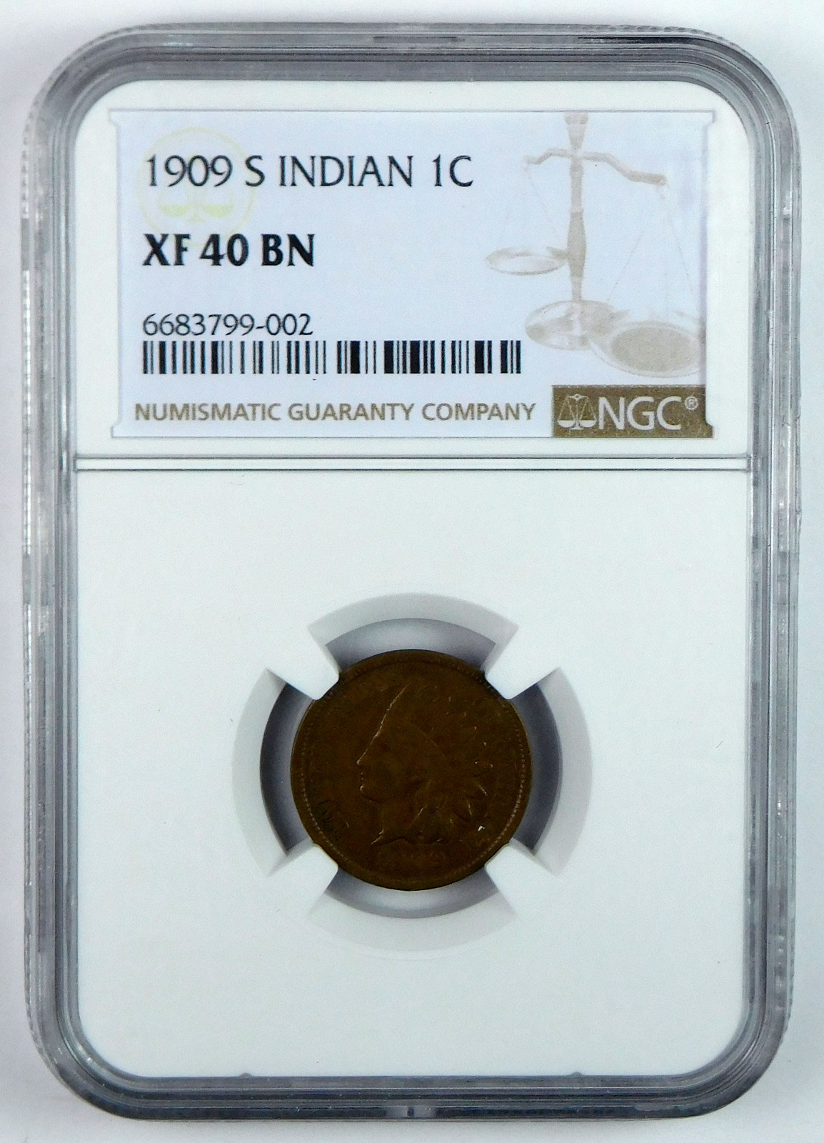 1909-S Indian Head Cent - NGC XF 40 Brown quantity
