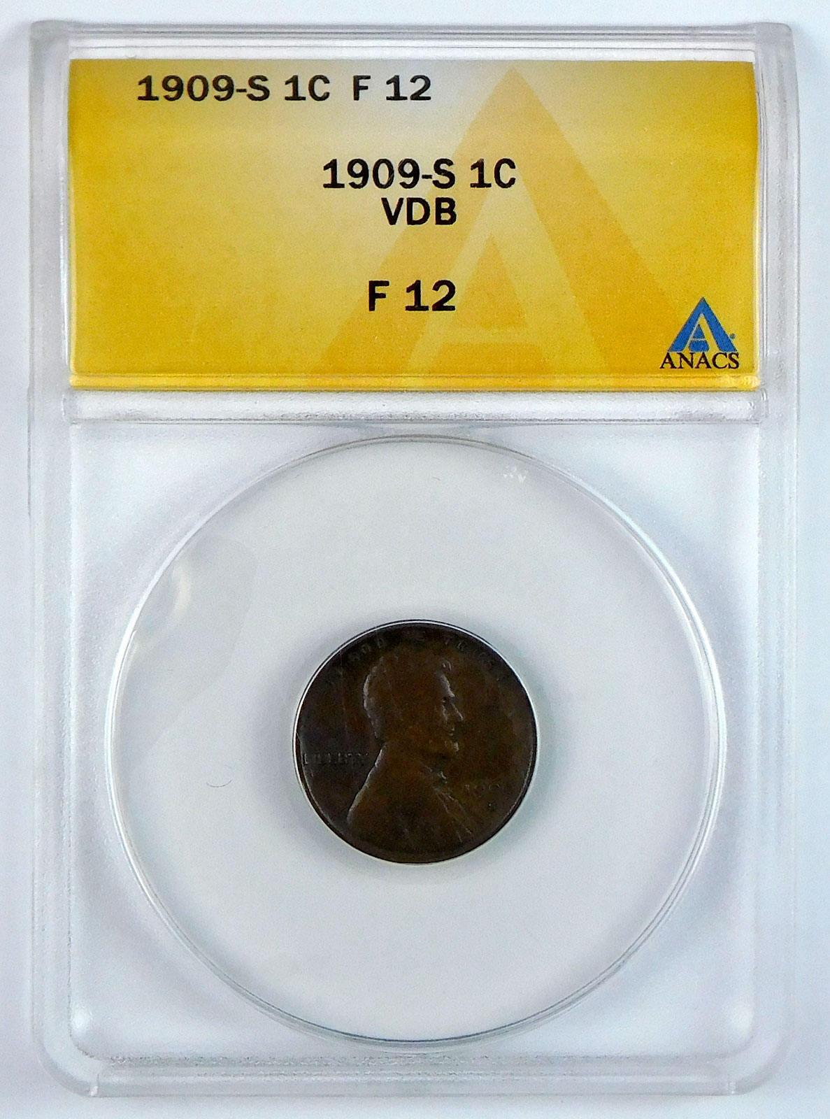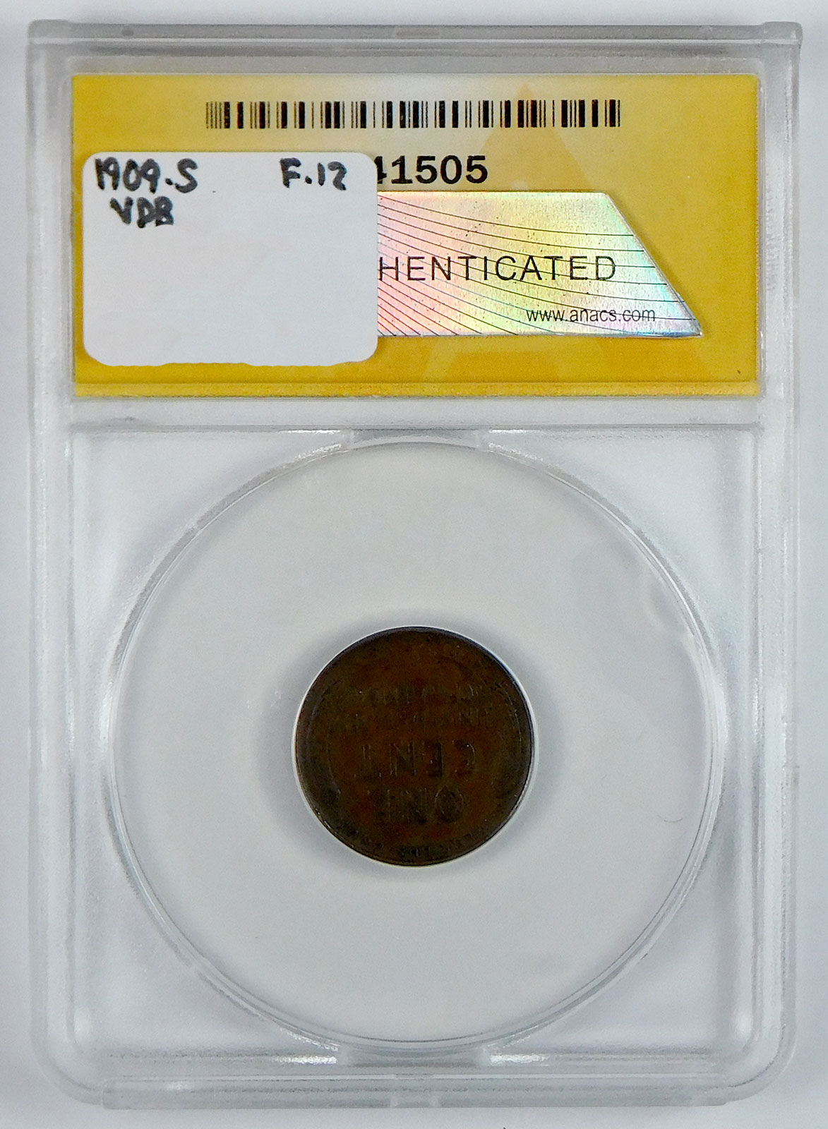 1909-S VDB Lincoln Wheat Cent – ANACS F 12