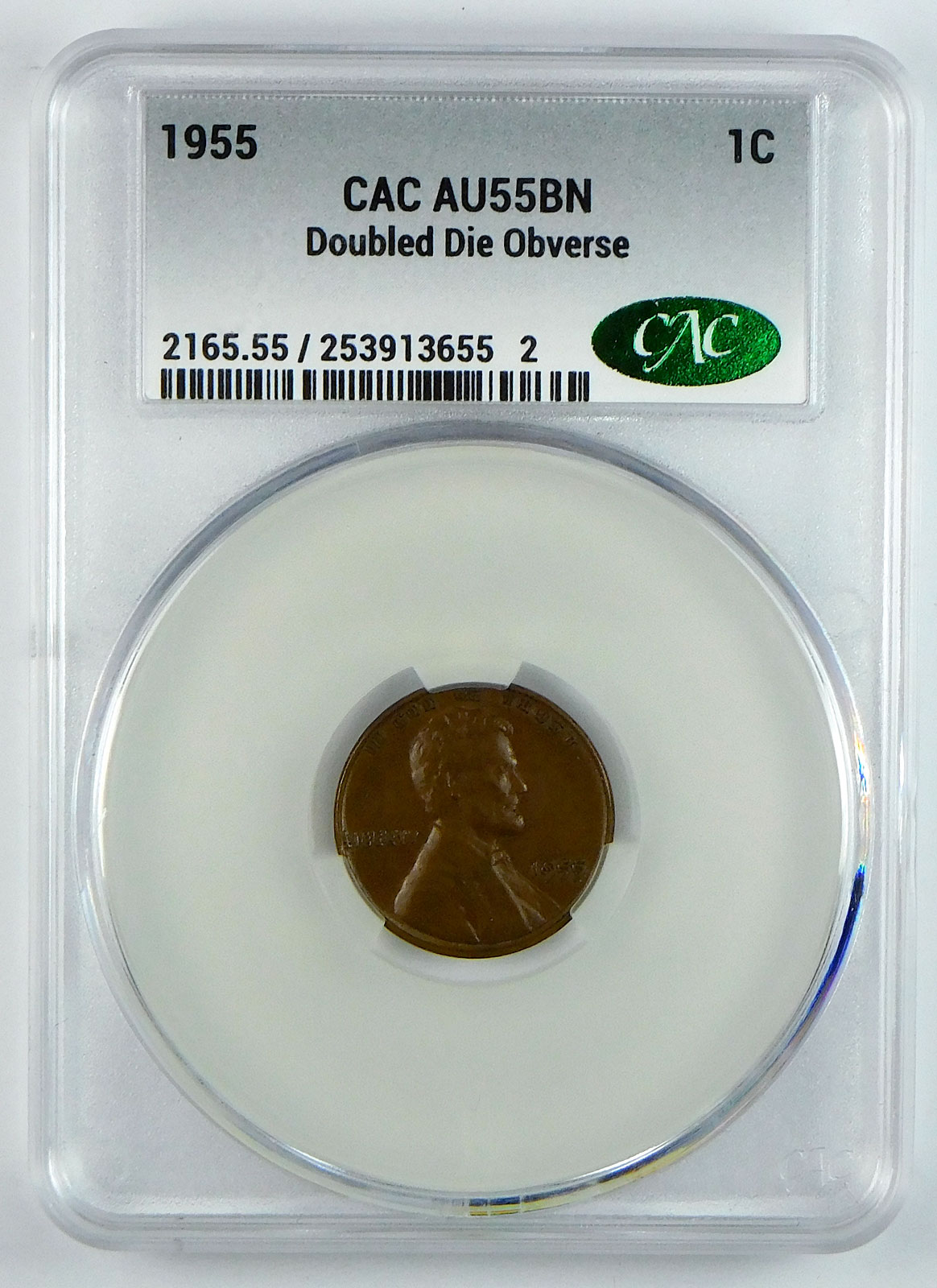 1955 Lincoln Wheat Cent - CAC AU 55 Brown - Doubled Die Obverse - CAC quantity