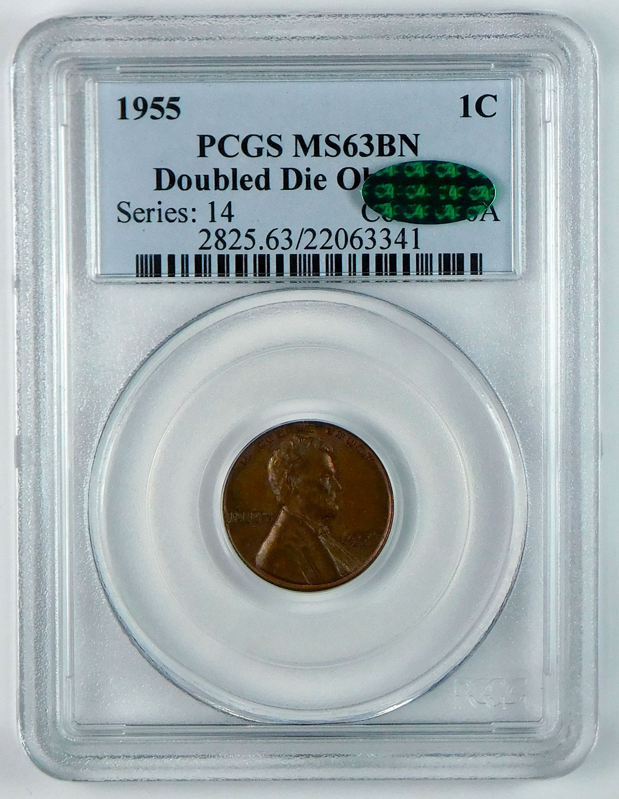 1955 Lincoln Wheat Cent - PCGS MS 63 Brown - Doubled Die Obverse - CAC quantity