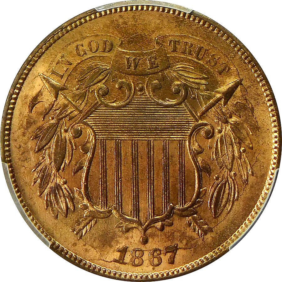 1867 Two-Cent Piece – PCGS MS 63 Red-Brown